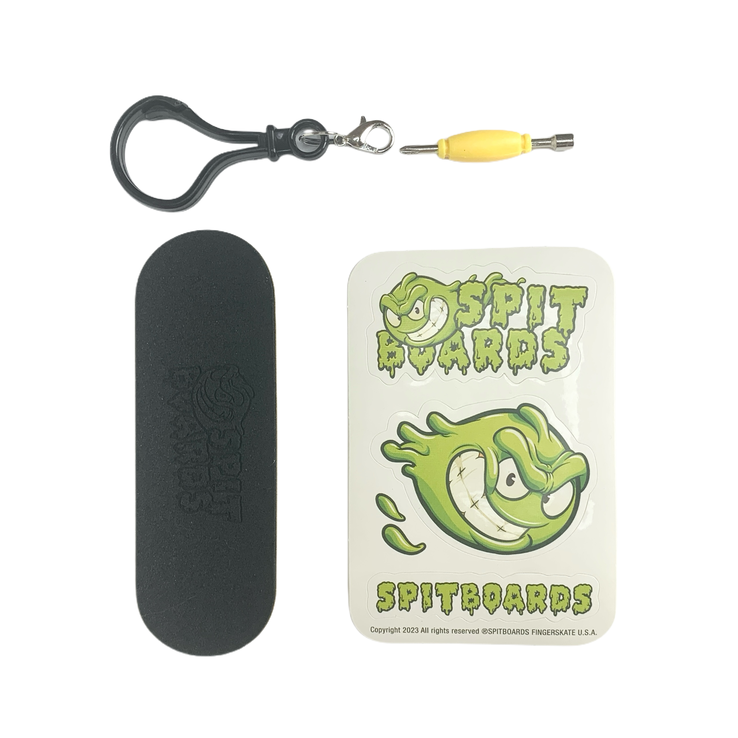 Experience a professional skating experience with the SPITBOARDS 34mm x 96mm Pro Fingerboard Set-Up (Complete). This real wood deck is composed of 5-layers for superior resilience and strength. Plus, the set includes pro trucks with lock-nuts, polyurethane pro wheels, real ball bearings and a superior grip. Get the perfect set-up...